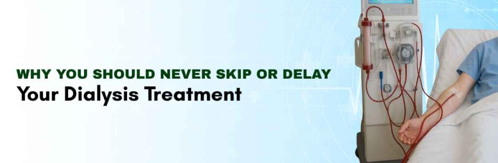 Skipping or rescheduling dialysis treatments can result in life-threatening fluid overload, toxin accumulation, and severe complications like heart disease, bone disease, and even death. Dialysis delivers only a percentage of normal kidney function, Why You Should Never Skip or Delay Your Dialysis Treatment? so each prescribed treatment must be adhered to in order to sustain health and quality of life.